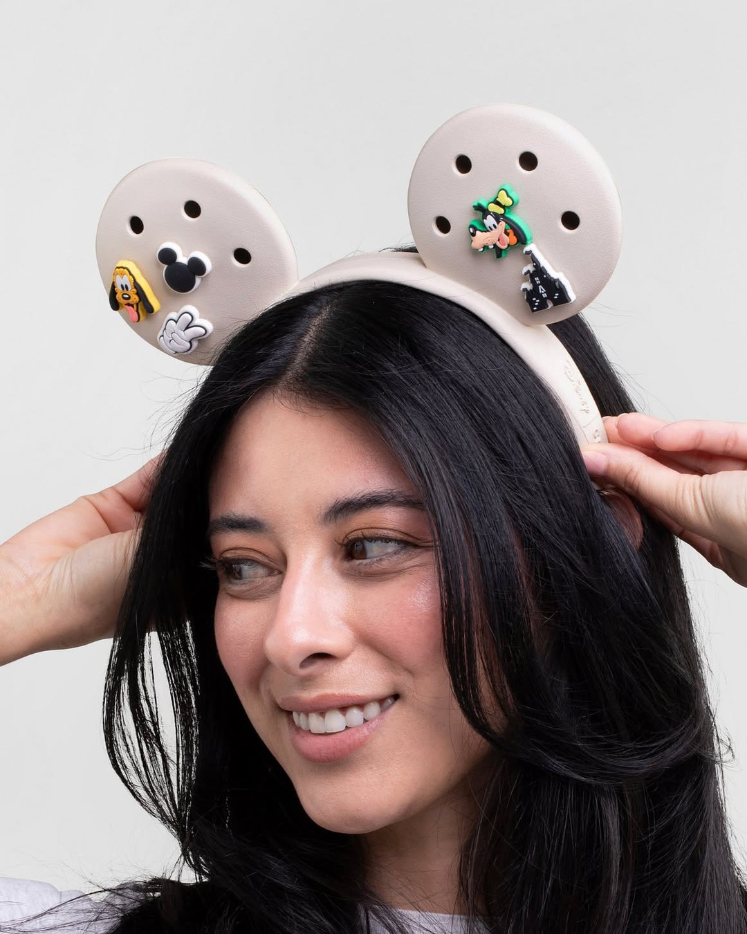 The new ears feature a redesigned structure that includes perforated or compatible surfaces, making it possible to attach removable charms similar to those used on Crocs footwear. This allows guests to mix and match different designs, characters, and icons to create a personalized look.